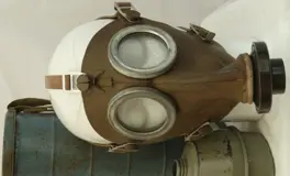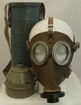 Een gebruikte maar nog goed Belgisch gasmasker, type: L.702, uit 1939. Maat: TAILLE 2 (Medium). Gemaakt van bruin rubber. Gefabriceerd door: SBA (Société Belge de l'Azote, Luik). Bedoelt voor de Belgische civiele bevolking en ook voor diverse overheidsinstellingen. Nog voorzien van de Belgische keuring stempels: CONTROLE S. P. G. 1939 en Société Belge de l'Azote et des Produits Chimiques du Marly (vaag leesbaar). Nog compleet met de filterbus (25mm filter thread) nog verzegeld en de trommel (gemerkt: L.702) met de stoffen draagband. Het rubber van het gasmasker is nog soepel en niet uitgedroogd.