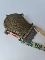 Dit handgemaakte messing magazijn voor kruit of patronen (Palaska) komt uit het Ottomaanse rijk. Naast Turkije komen ook Griekenland en Albanië in het geding, getuige het textielwerk van de draagriem. Het stuk is verfraaid met een bloemig-geometrisch motief dat met de hand is uitgesneden. Er zitten nog steeds resten van zwart poeder in.