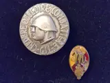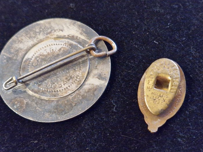 - Ronde aluminium broche met het motto DUCE Credere Obbedire Combattereo in de GIL (Italian Youth of the Littorio) pin met merken op de achterkant van het commando en de fabrikant