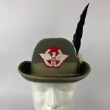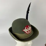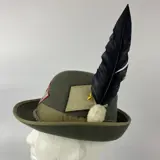Alpini General's Cap of Alpine troepen van het Italiaanse leger, jaren 80-90. Hoed gemaakt van donkergroen vilt met een rand in een lichtere kleur die past bij de rand eromheen. Op de voorkant heeft het een grote geborduurde patch voor de generaal van het Italiaanse leger, met metallic draad.