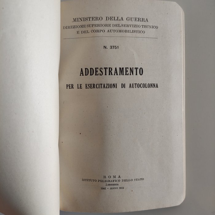 - "Training voor autocolumn-oefeningen" - prijs £ 7 - gedrukt door het Istituto Poligrafico dello Stato in het jaar XIX (1941);