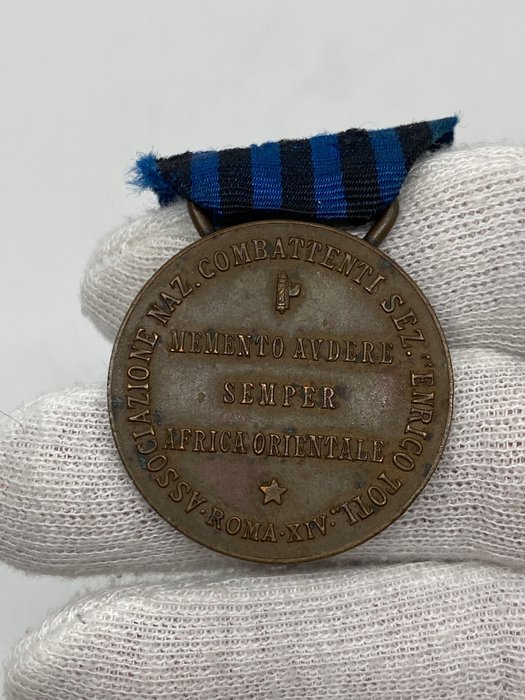 Mooie en zeldzame nationale verenigingsmedaille. strijders sectie enrico toti memento adure altijd oost-afrika.