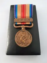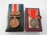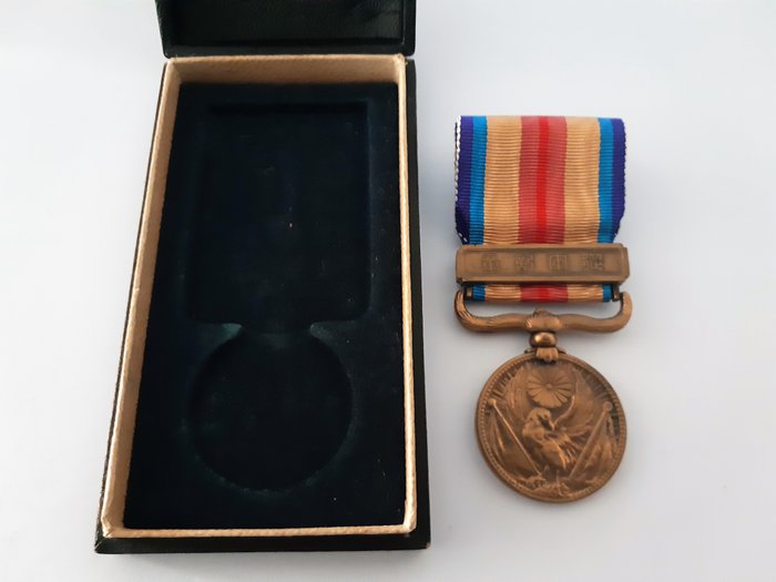 Japans bronzen medaille China Incident WWII 1937-1945 in origineel zijden lint en originele doos en WW2 Japanese Imperial Red Cross Silver Medal 1941 met origineel zijden lint, speld en originele doos.