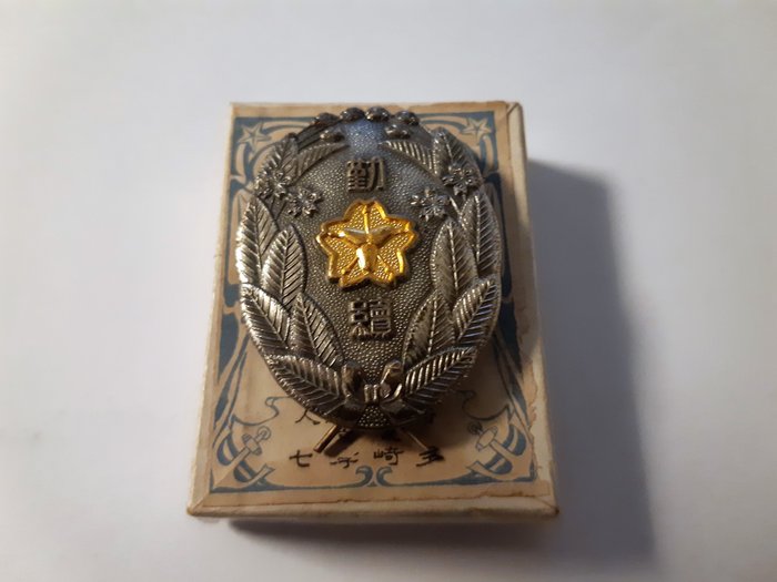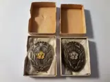 Twee Antieke Sterling Zilveren Militaire Japanse Badges eerste en tweede klas met originele dozen uit de Tweede Wereldoorlog.
