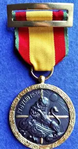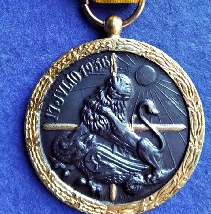 —- Guerra civil española, Legión Cóndor, generaal Franco. Medalla de la campaña (retaguardia). Buen staat. Medalla española de la campaña militar en la guerra civil, sección de retaguardia, lucha fuera del frente, lleva los bordes de la cinta en colour verde por servicios meritorios en la retaguardia. Caja origineel, señales de uso. Arriba Spanje. Una grande, libre, imperiaal. 17 de Julio de 1936. (verkocht militair uniform soldado batalla emblema distintivo escudo condecoración insignia franquismo Falange Aviacion piloto escuadrilla caza avión fuerza aérea Alemania alemán falangista).
