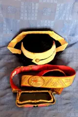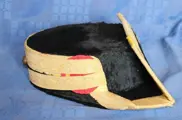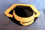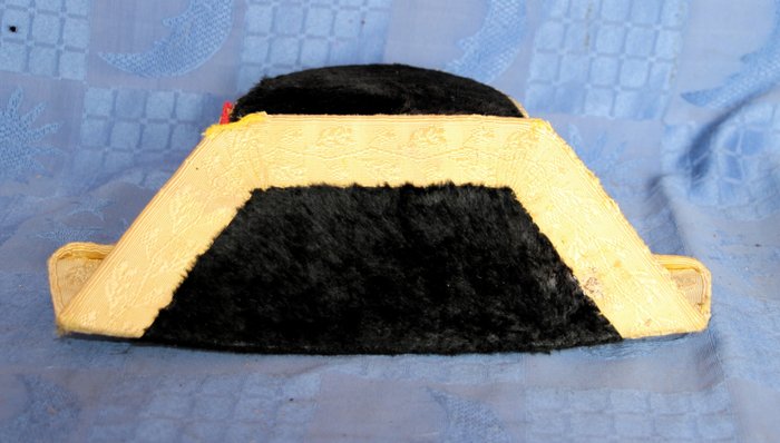 Tricorn-hoed en gala-patroonriem met burgerwachtriemen, Franco-periode, de tricorn-hoed is gemaakt met gouddraad en stierenvel, met een kokarde met de vlag van Spanje, messing en lakleren patroonriem, het insigne ontbreekt, het wordt gedragen op de schouderriem met de riem geborduurd in gouddraad met de vlaggen van het Spaanse wapen, de torens en de leeuwen. gesp met de adelaar van San Juan en het kruis van Santiago in rood email, vlaggen van de Spaanse infanterie. en de kroon die in de Franco-periode werd gebruikt.