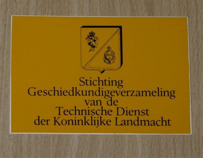 Een ongebruikte sticker van de Stichting Geschiedkundige Verzameling, van de Technische Dienst, van de Koninklijke Landmacht, uit de jaren'80. Afmeting ongeveer: 12 x 8,5 cm.