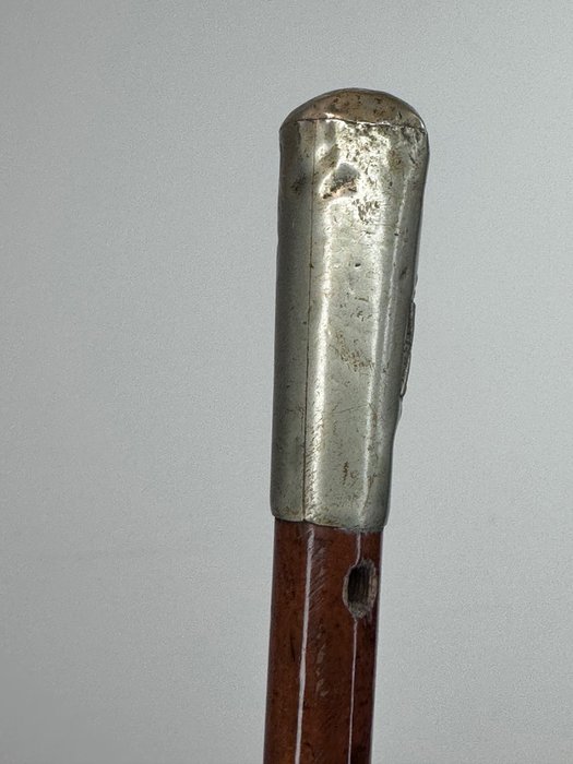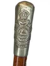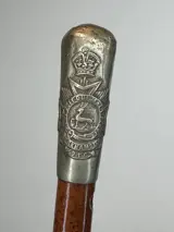 Een swagger stick, met metalen knop en embleem van deThe Inns of Court OTC Regiment