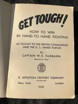 VERY RARE book ''Get Tough'',Hand-to-handfighting, as taught to the British Commandos by Major W.E, Fairbairn. Extremely nice OSS-MI6 related handbook. This is a nice and much more rare FIRST edition which was published in 1942. In this edition, Fairbairn has the rank CAPTAIN, whereas on later this is changed ot MAJOR. This edition was printed in the USA.