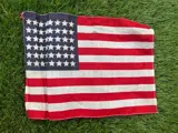 A nice 100% original48 star flag, slightly smaller than A4 size. This is a nice early version that were often taken by the soldiers to the battlefield as a keepsake/reminder from home! The history of the flag is also reflected by the fantastic patina on this particular example; the flag is slightly stained and has some minor damages from use, clearly original flag!