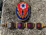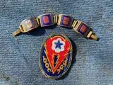 Fantastic WW2 ETO France souvenir bracelet and a ADSEC patch. The bracelet contains links that could be bought by the GI as a souvenir and the bracelet includes Normandy, Bretagne, Languedoc and roussillon. These were likely areas in which the GI fought at that stage. A really cool souvenir bracelet which was clearly worn. ADSEC was the Advance Section of the Communications Zone (COMZ), European Theater of Operations, United States Army (ETOUSA). The catch is funny functional and the bracelet could still be worn.