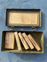 Offered for auction is a very difficult to find US WW2 First Aid Jeep Kit Aeronautic First Aid kit, as used in the famous Willys Jeep a significant part of the original contents are still here! What is there is all 100% WW2, no postwar stuff there as is so often the case! The kit is in nice functional condition a beautiful label and almost all paint remaining; the marking stock on the front suggests it was produced 1944/1945. Althogether a fantastic set. for your Willys or other US vehicle I will let the photo's do the talking, all other boxes not in detail photographed are alo filled. Even the ointment tubes are present!