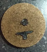 Te koop. Een mooi bewaard gebleven setje uit wo2 duitsland. Een doodshoofdje met cijfers en letters en een adelaar,allebij van metaal Gemarkeerd