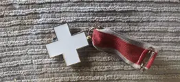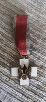 Te koop aangeboden uit een verzameling. Het vergulde Deutsches rotes Kreuz uit wo2 van nazi duitsland,mèt daarin een vergulde adelaar met het hakenkruis. De medaille en het lint verkeren nog in goede staat.