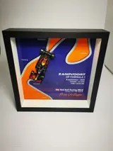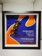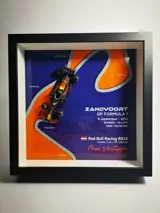 Schitterend decoratief object met racedetails ter herinnering aan de nu al legendarische winst van Max Verstappen tijdens de terugkeer van de Formule 1 naar Zandvoort in 2021.