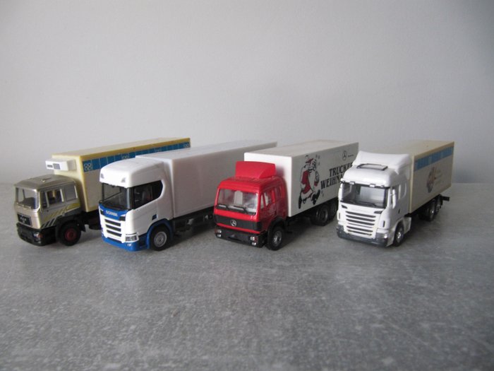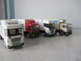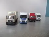 veel van 4 vrachtwagens (carrosseriedrager) 1/87 2 Scania, 1 Man en 1 Mercedes, vrachtwagens gebruikt en aangepast in zeer goede staat