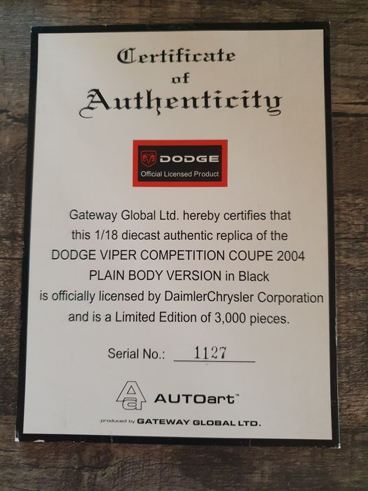 Autoart - 1:18 - Dodge viper - Met certificaat