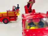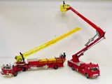 Twee klassieke vintage brandweerwagens van de eerste versie van Corgi Toys gemaakt in 1968 en 1970. Beide vrachtwagens zijn in prima staat, met name de LaFrance, terwijl het model Simon Snorkel wat meer patina heeft. Een van de assen voor het omhoog brengen van de LaFrance ladder is wat versleten. Het draait wel en doet zijn werk wel.