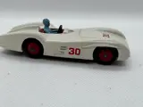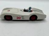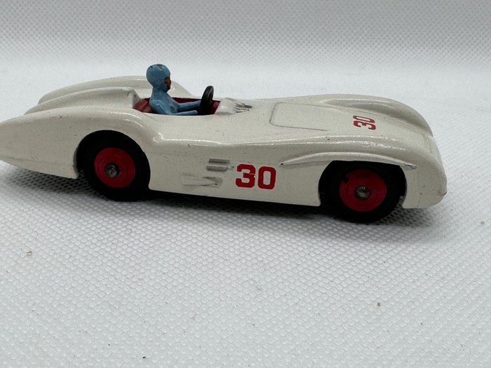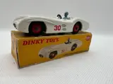 Modelauto merk Dinky Toys Meccano Made in England, Mercedes Benz Racing auto model nr. 237, witte kleur en coureur met blauwe overall, geproduceerd in de jaren 50/60.