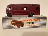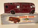 Originele Meccano England Dinky Supertoys Maudsley Horse Box.Met originele doos in goede staat. Model blijkens datumstempel gemaakt in 1955. Kleur maroon met dito velgen en zwarte bandjes. Technisch in uitstekende staat, bespeeld. Opvallend genoeg zonderde gebruikelijke decalls. Lijken nooit aanwezig te zijn geweest. Speling af fabriek?