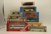 Verzameling van 10 modellen van bussen waaronder een zeldzaam MB-model van V&V: