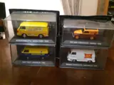 Een model adelaarsmerk (vintage reclamevoertuigen). Fiat 1100 T bestelwagen bouwjaar 1962, Fiat 500 C bestelwagen bouwjaar 1950, Alfa Romeo F 12 bestelwagen bouwjaar 1972, Renault estafette bouwjaar 1975, alles in schaal 1:43 en in de originele gesealde doos.