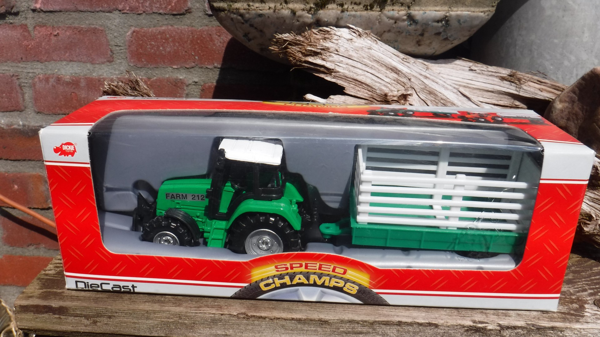 Farm 212 traktor met aanhanger.