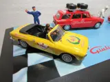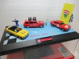 schaal 1/43 modellen in hun plexiglas kast cm.30 x 15 x hoogte 13