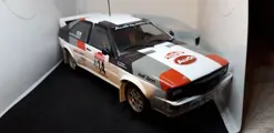 Audi uit seizoen 1981 ( 23e ralley Sanremo )Dit jaar was de Audi Quattro winnaar algemeen WRC Championship. (De doos is iets beschadigt) .Wordt verzonden met Post NL voorzien van Track & Trace.