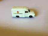 Witte kleur, intacte Rode Kruis- en LCC-ambulancetransfers, zilveren grille, achterkleppen die open kunnen met gedetailleerd interieur. Zwarte kunststof wielen en zwarte bodem. In zeer goede originele staat..