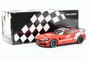 Bijzondere auto, zowel in het echt (1:1) als in miniatuur (1:18): de Mercedes-AMG GTR Safety Car Formula 1 van het jaar 2021. Deze auto is geproduceerd door Minichamps in de schaal 1:18, in een gelimiteerde oplage van slechts 882 stuks. De afwerking, detaillering en kwaliteit zijn van een hoog niveau. Het model is 100% nieuw en wordt geleverd inclusief de originele verpakking! Werkelijk een extreem mooi model voor de verzameling! Veel prachtige details!