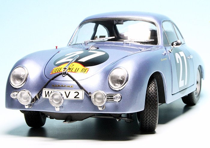 Unieke kans een prachtig kavel te bemachtigen met daarin aangeboden een fantastisch schaalmodel van de Porsche 356 A Carrera Coupé #27 Sieger ''Lüttich-Rom-Lüttich 1960''. Dit model is uitgebracht door Schuco in de schaal 1:18. Het betreft een zeer exclusief schaalmodel, met een bijzonder mooie afwerking en uitzonderlijk veel details. Bij dit model kunnen de deuren, motorkap en bagageklep geopend worden. Het model is ongebruikt, 100% nieuw en wordt geleverd inclusief de originele verpakking!