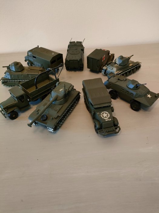 SOLIDO Gemaakt in Frankrijk. Lot van 9 militaire voertuigen in perfecte staat.