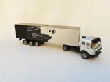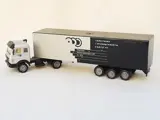 mooie trekker met oplegger in de bedrijfskleuren met originele bedrukking