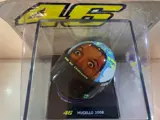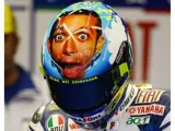 Ongelooflijke helm van de beste motorrijder aller tijden, de Italiaanse coureur Valentino Rossi met het Yamaha-team in de GP Mugello 2008, een seizoen dat voor de achtste keer werd uitgeroepen tot wereldkampioen! zijn vijfde keer in Moto GP, met zijn gezicht op de helm.