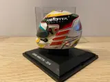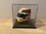 Mooie helm op schaal 1:5 van de helm van Lewis Hamilton uit 2014. Historische helm waarmee hij in het seizoen 2014 tot wereldkampioen F1 werd uitgeroepen, waarmee hij zijn tweede wereldtitel behaalde en zijn eerste titel bij het Mercedes AMG F1 Team.