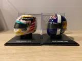 2.-D.Coulthard: Helm gebruikt door de Schotse coureur (2005) in zijn eerste seizoen bij het Red Bull-team. Hij kwam uit in de F1 (1994-2008) voor de teams Williams, McLaren en Red Bull. In 2001 werd hij tweede.