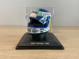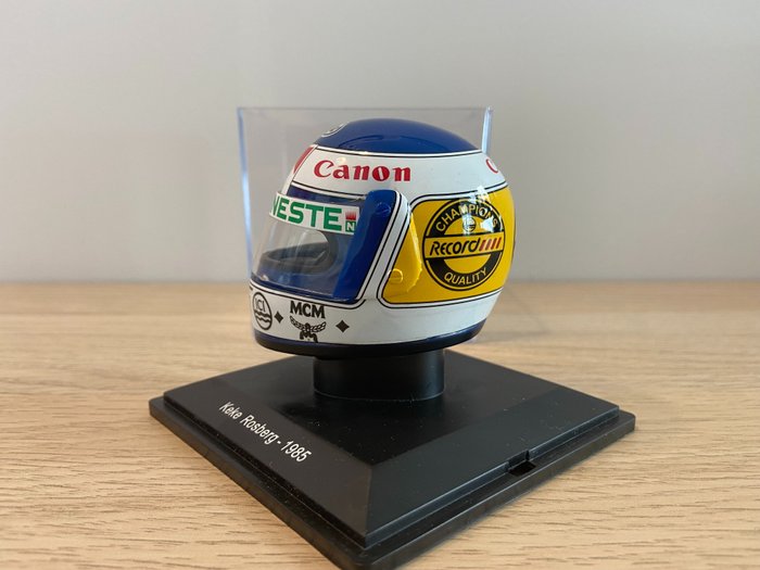 -Keke Rosbert Helm (1985): Wereldkampioen in 1982, hij nam deel aan de F1 van 1978 tot 1986. Deze helm werd gebruikt in zijn voorlaatste jaar in de F1, rijdend voor het Canon Williams Team.