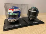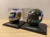 Prachtig pakket van de 1:5 schaalhelmen van vader en zoon, Keke en Nico Rosberg.