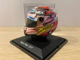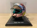 1.-Sergio Pérez (2017): Helm gebruikt door de Mexicaanse coureur (huidige Red Bull Racing-coureur, teamgenoot van Max Verstappen), in het seizoen 2017, rijdend voor het Force India-team.
