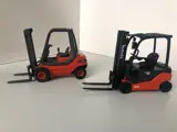 Twee schitterende onbespeelde nieuw staat heftrucks de Toyota type TTRIGO 40 - 16 denk in de schaal 1:43 en de Linde uitgebracht door GAMA in de schaal 1:25 beide modellen hebben altijd in mijn zon en stofvrije vitrine gestaan . Uniek en echt prachtig .