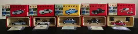 Het kavel bestaat uit een verzameling van 5 modellen historische oldtimers op schaal 1:43 van Vanguards.