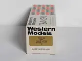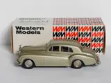 Made in England door Western Models, modelnummer WMS 48, schaal 1:43, in ongebruikte staat en met originele verpakking. Enkele bruine vlekken op de wielvelgen zijn verkleurde lijmsporen van de bevestiging van de wieldoppen, geen roest. De buitenspiegel ontbreekt, beide voorbanden hebben een breuk, zie oa de laatste foto. Ik zorg voor goede verpakking.