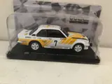 Een miniatuur auto van het merk Opel Ascona 400 Rally Sweden 1980, schaal 1:24, identiek aan de foto's.