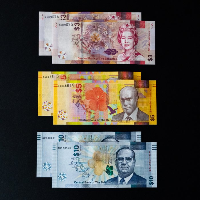 Bahamas - 2 x 3, 5, 10 Dollars 2019-2022 - P-78, P-78A, P-87