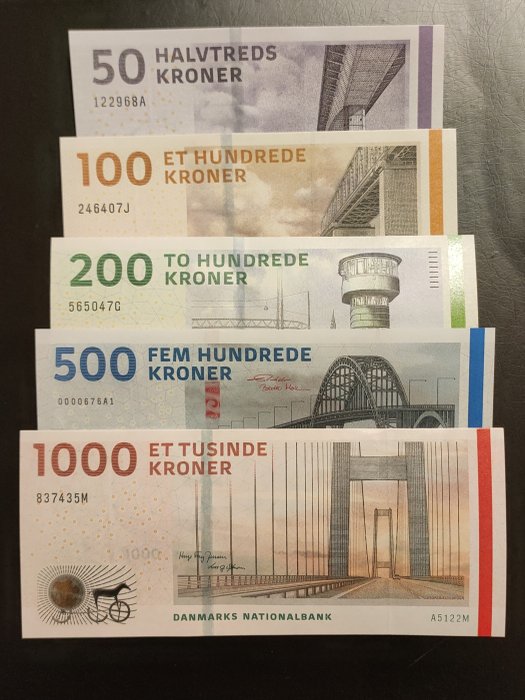 Denemarken - 1000, 500, 200, 100 and 50 Kroner - Various dates