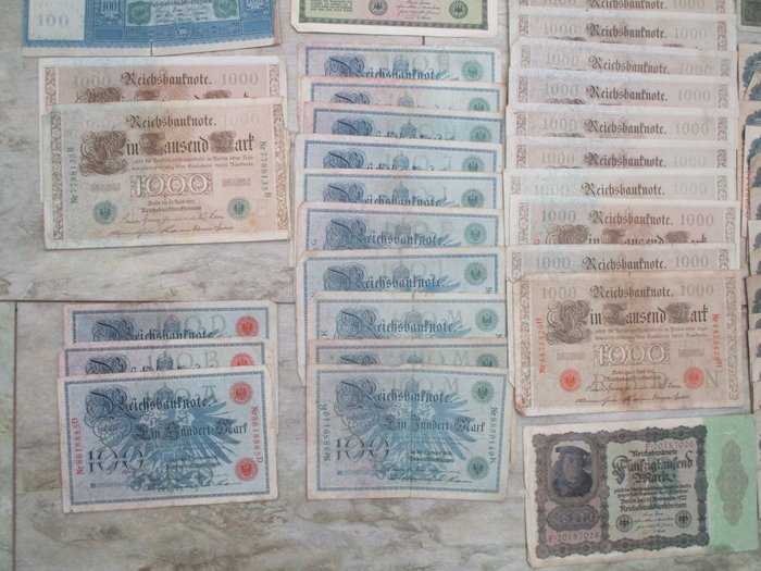 110 Duitse bankbiljetten uit verschillende jaren met duplicaten