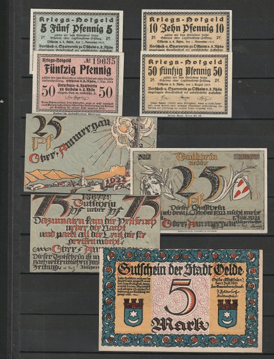 TOP-album net prachtige biljetten van kleine dorpjes, stadjes en steden, Not geld rond 1920.