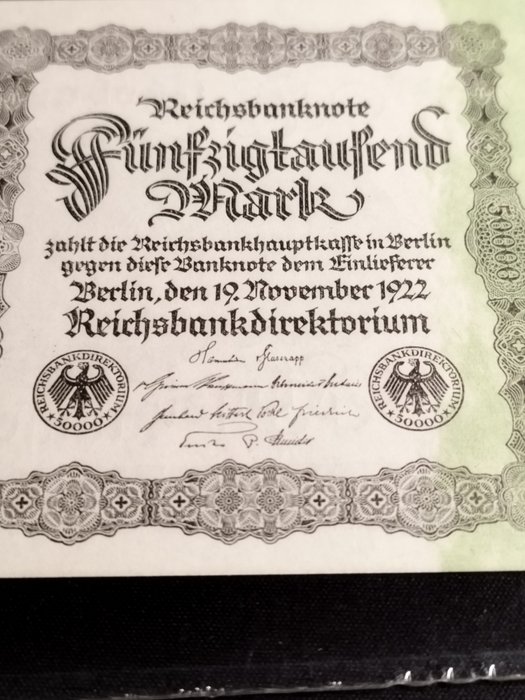 Bankbiljet van 50.000 Duitse mark uitgegeven in 1922 door de Banco de la República.