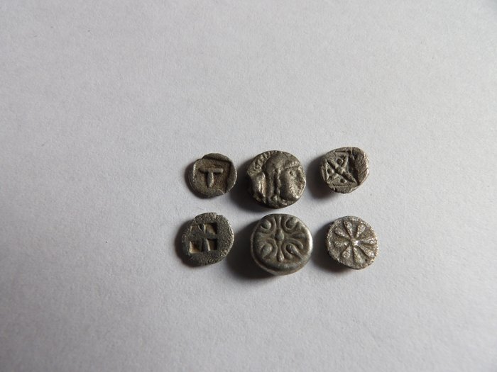 Lot van 6 Griekse kleine zilveren munten, waaronder:
